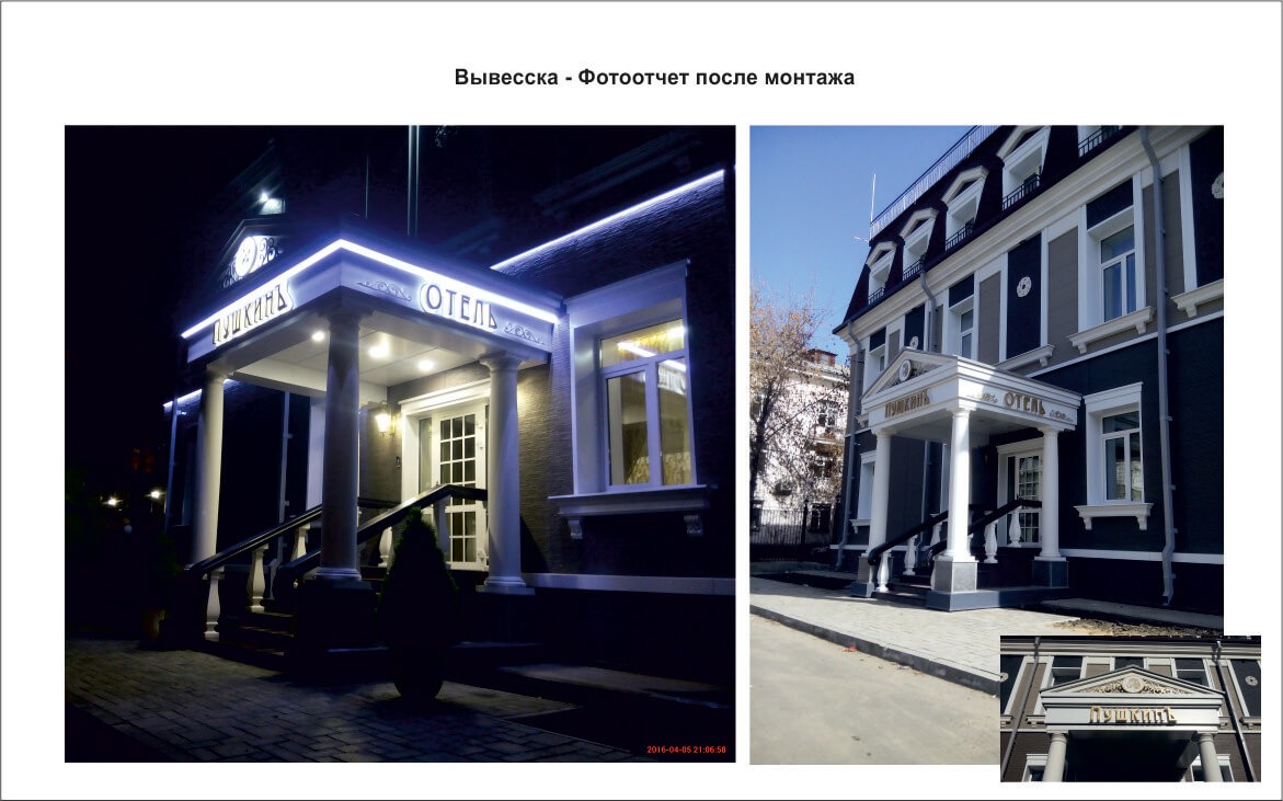 Монтаж готовой вывески происходит в защитной плёнке, которая снимается после окончания всех работ.